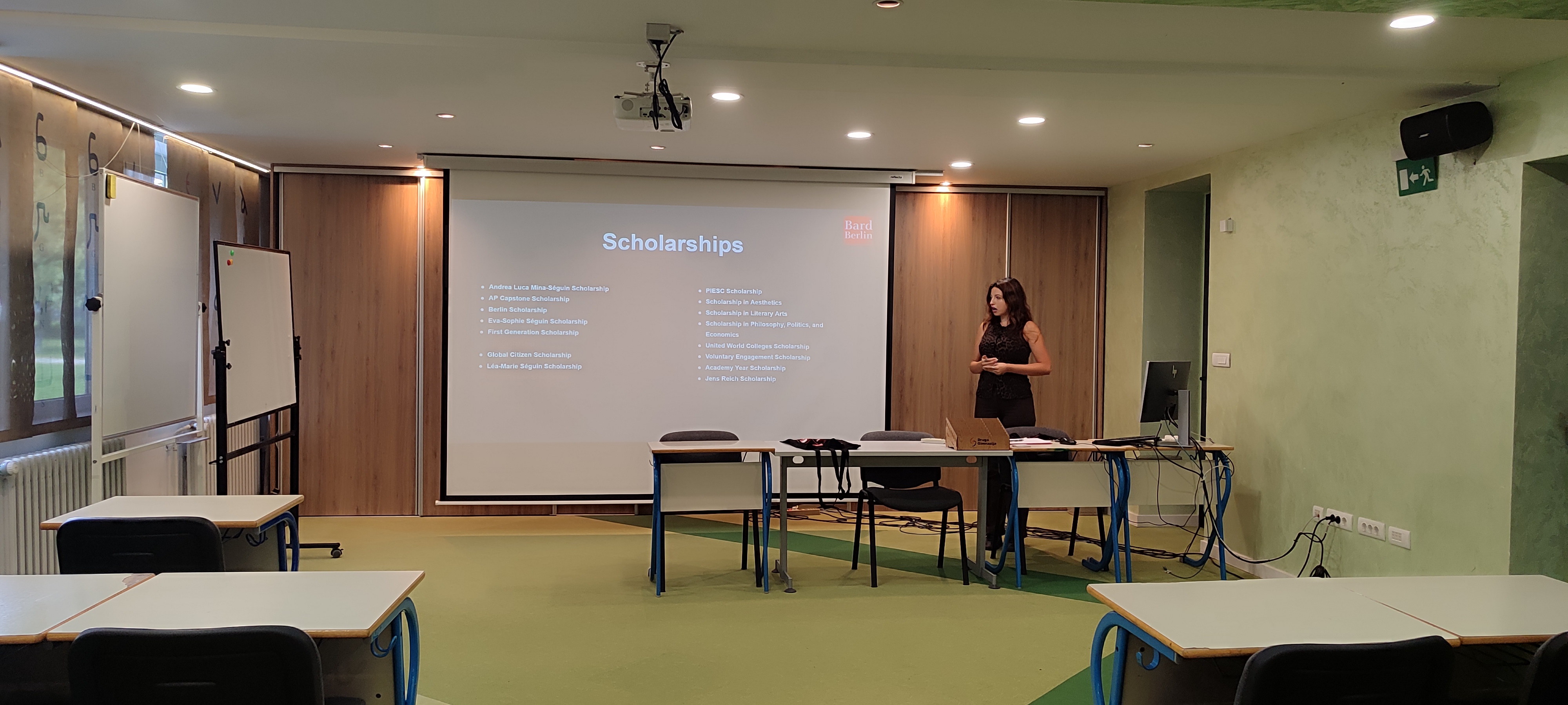 Krajem septembra maturanti naše škole imali su priliku učestvovati na dva događaja u sklopu programa profesionalne orijentacije učenika. U četvrtak 25. septembra prisustvovali su prezentaciji Bard koledža iz Berlina. Predstavnica koledža, Marija Stefanovska, upoznala je učenike s programima koje Bard koledž nudi, uslovima upisa – s posebnim naglaskom na kriterije za IB učenike – te mogućnostima stipendiranja i finansijske podrške tokom studija.
