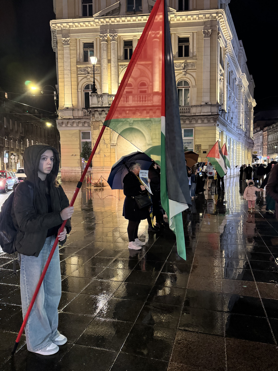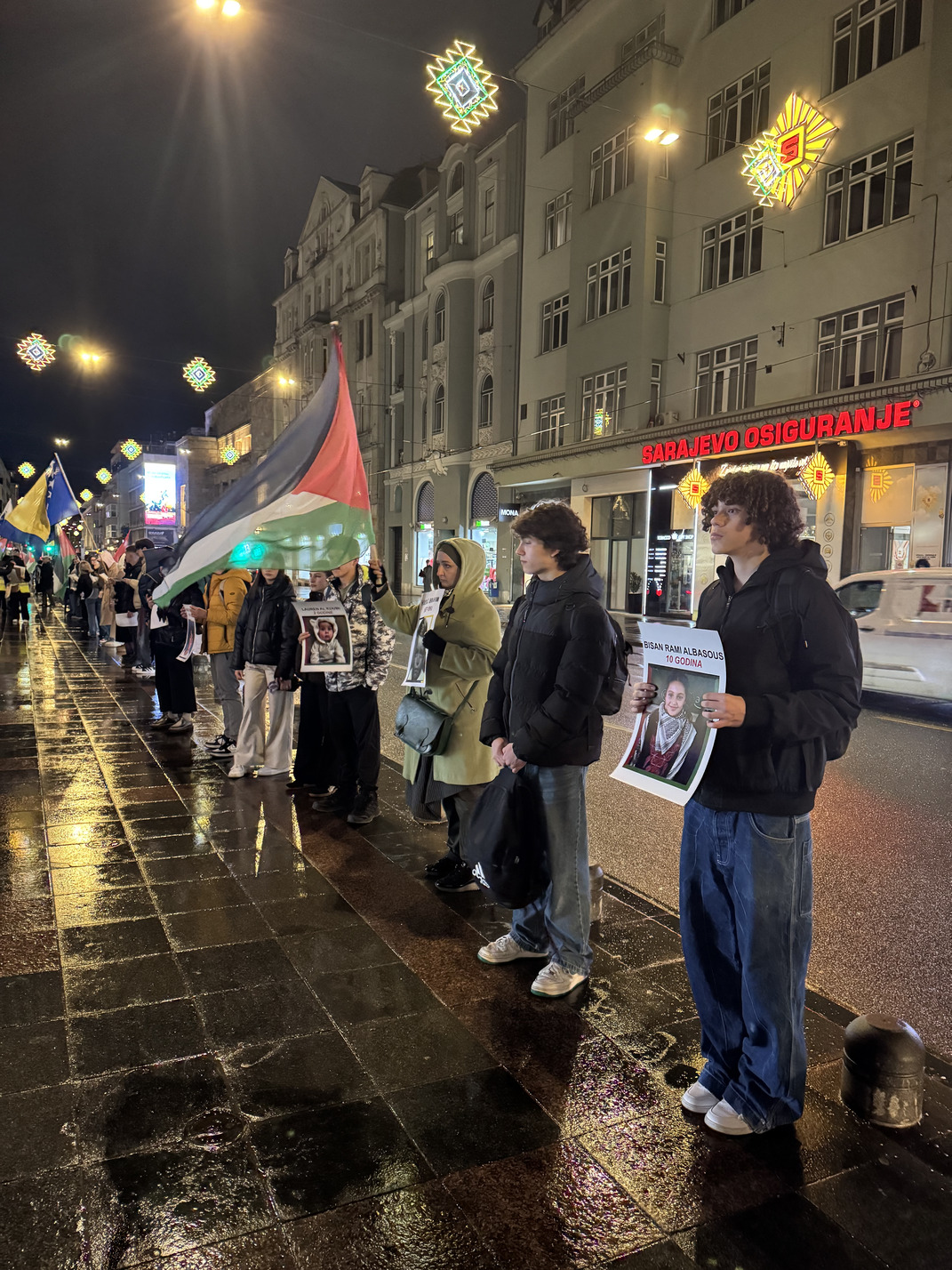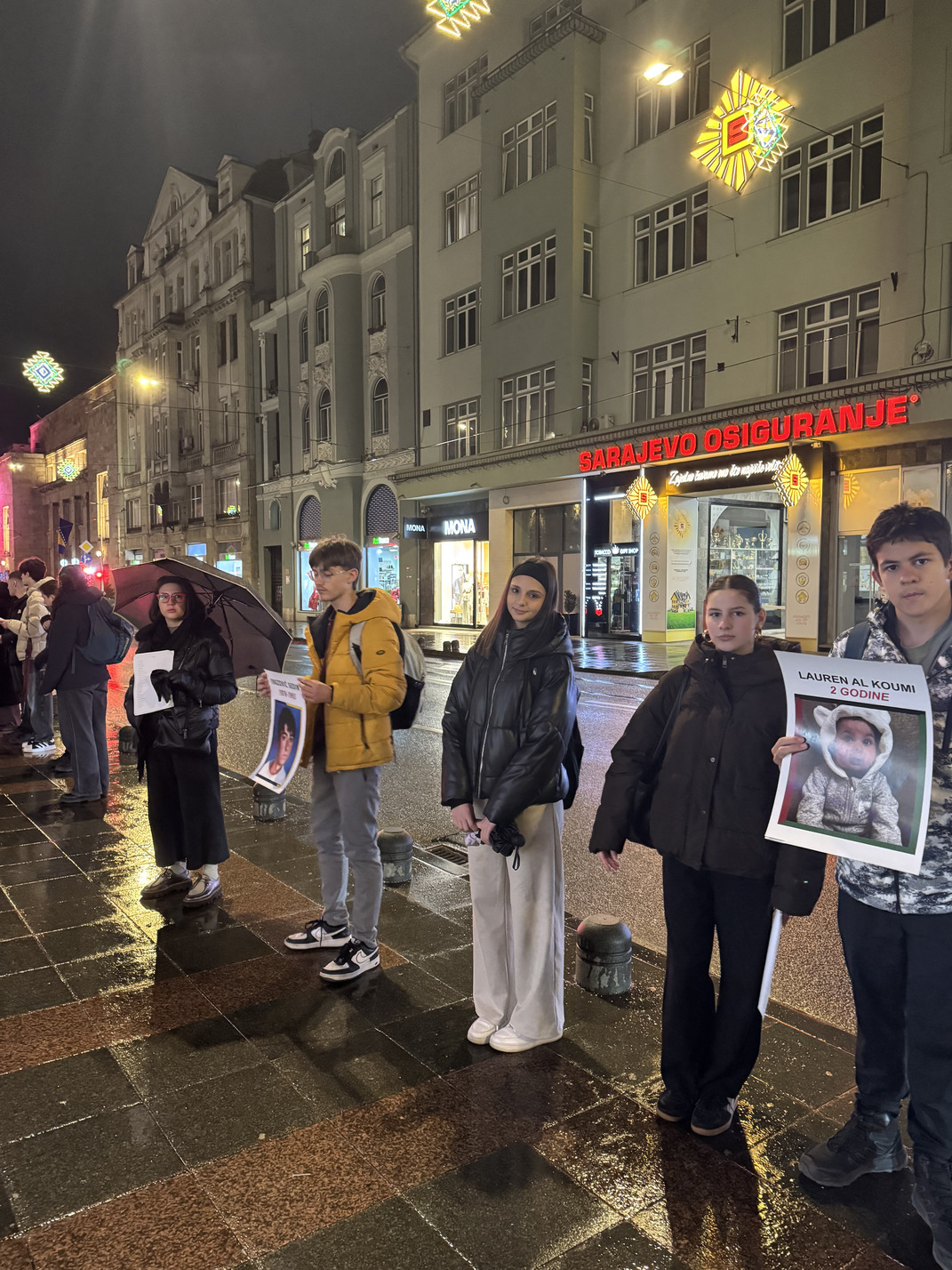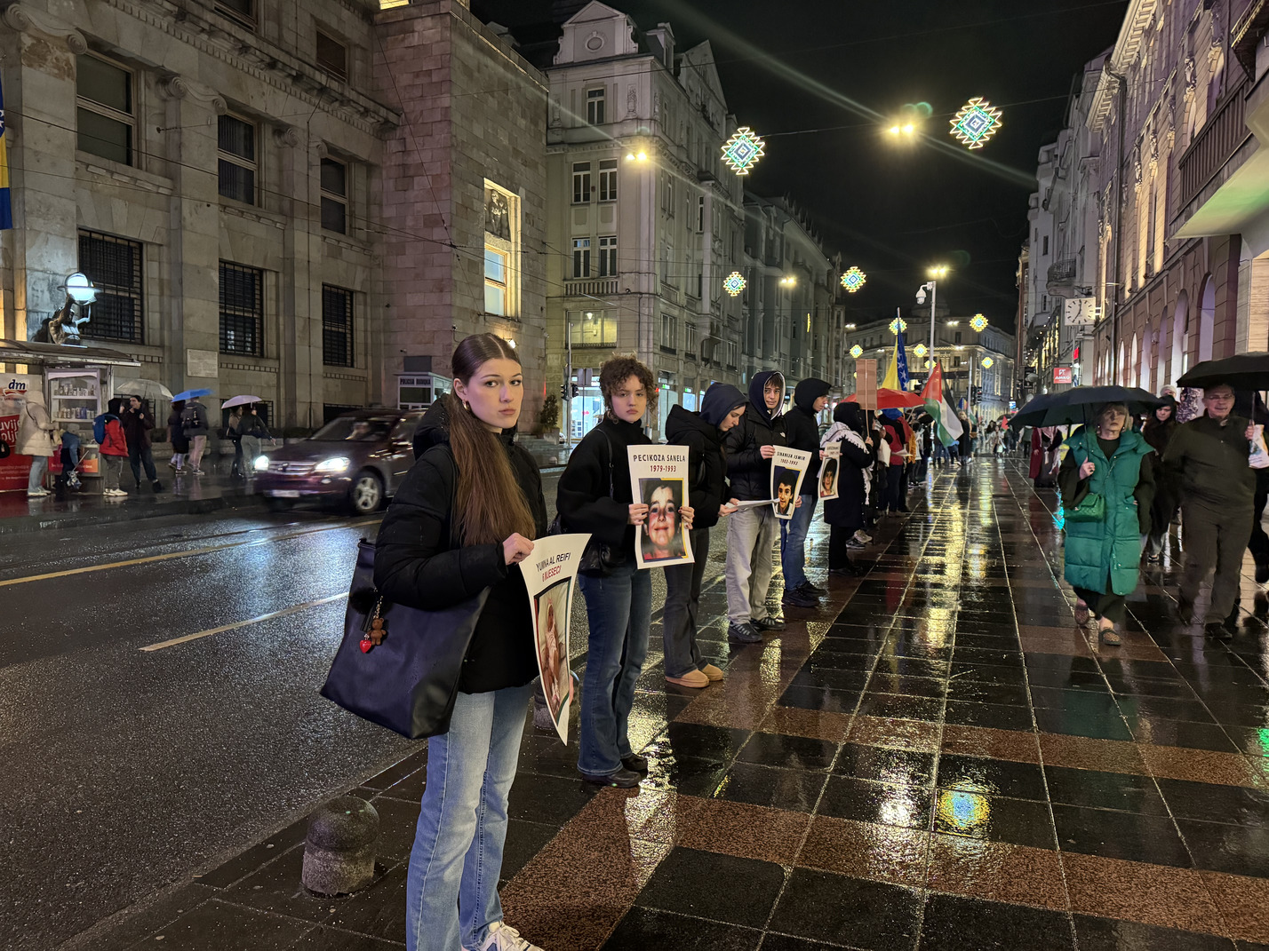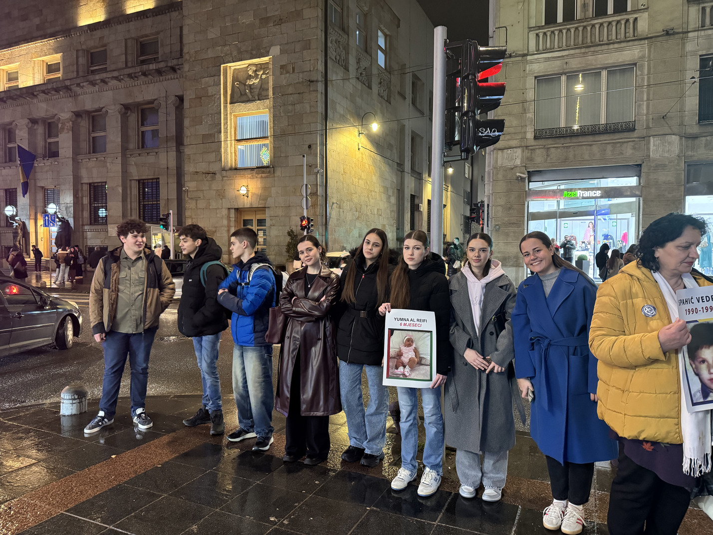Formiranje niza započelo je u 18:30 sati, dok je sama akcija trajala od 19:00 do 19:30 sati. Naši učenici su svojim prisustvom i angažmanom pokazali zrelost, empatiju i razumijevanje važnosti očuvanja historijskog pamćenja te odgovornog promišljanja savremenih društvenih izazova. Uprkos kiši koja je padala tokom cijelog trajanja događaja, ostali su dostojanstveni i istrajni, čitajući imena i držeći fotografije ubijene djece. Njihovo učešće svjedoči o razvijenoj svijesti, solidarnosti i odgovornosti, kao i o vrijednostima koje škola nastoji njegovati kroz obrazovanje i odgoj.