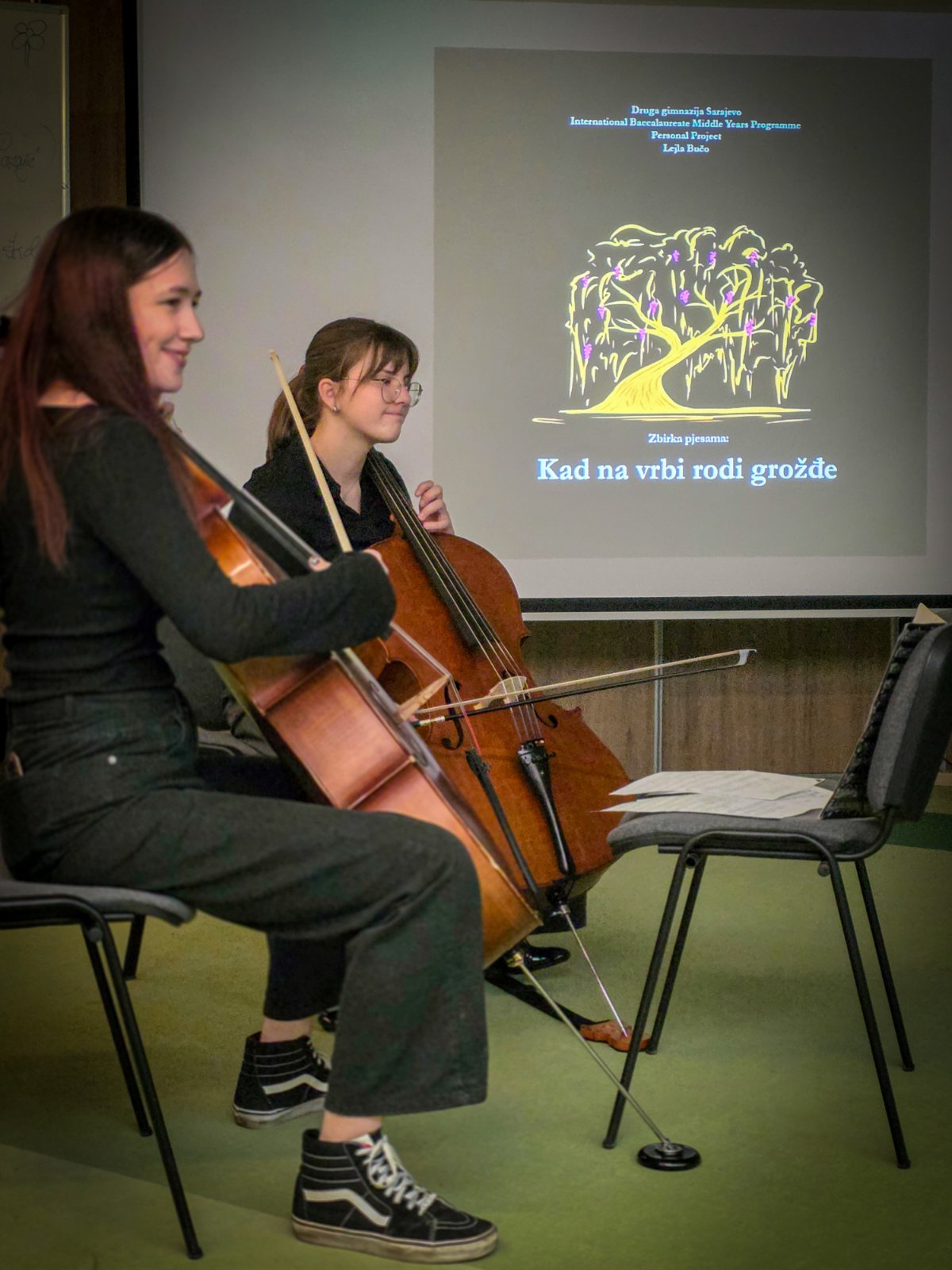 Učenica Lejla Bučo odvažila se da riječima utjelovi vlastita iskustva, misli i osjećanja obogaćujući našu malu drugogimnazijsku umjetničku tradiciju. Promovisana je njena zbirka poezije pod naslovom “Kad na vrbi rodi grožđe” - djelo koje nastalo u okviru obaveznog ličnog projekta učenika MYP programa koji potiče mlade na istraživanje ličnih tema, sposobnosti i talenata.