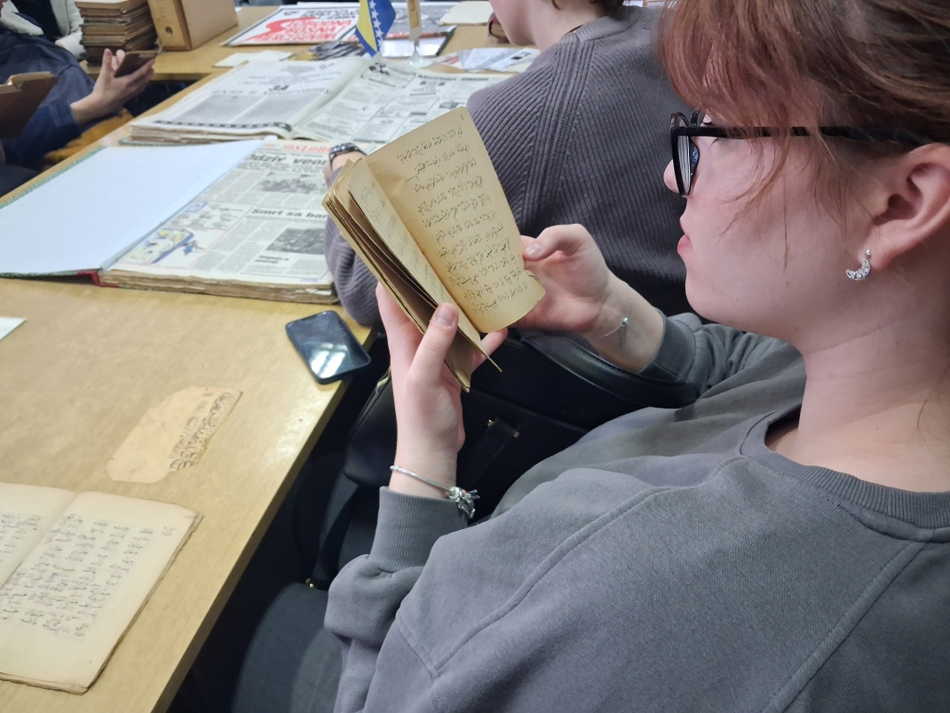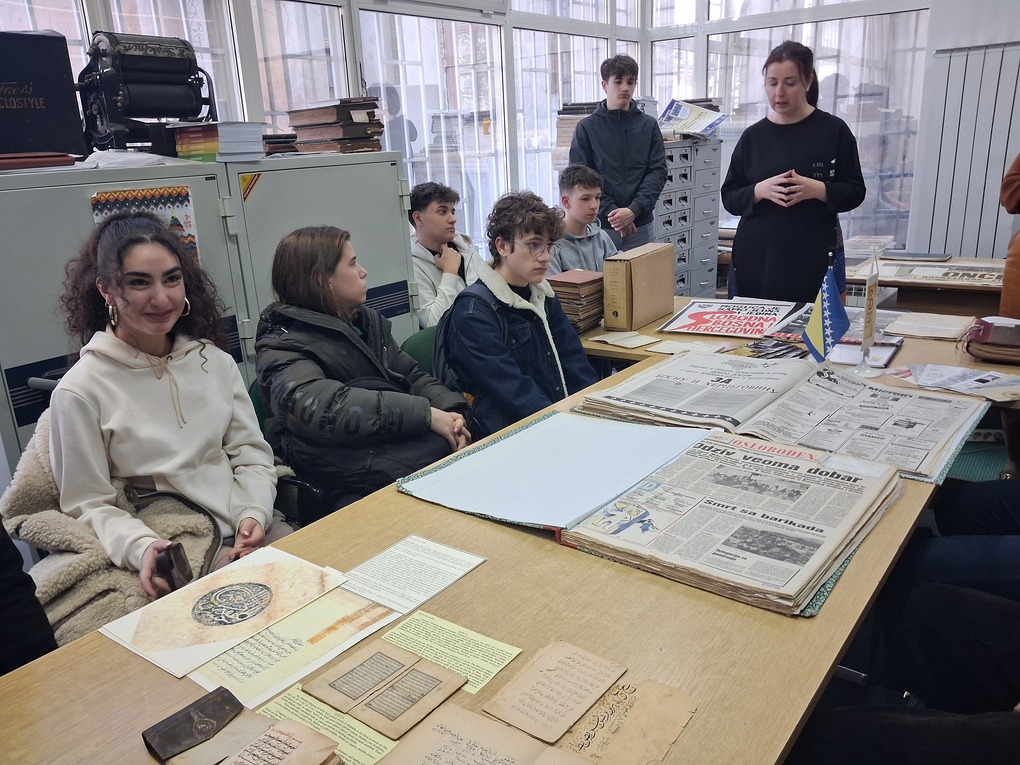 U petak 27. februara učenici II-3 IB razreda u pratnji profesora Vedada Mulavdića posjetili su Historijski arhiv Sarajevo. Posjeta je organizirana u okviru Dana otvorenih vrata arhiva, manifestacije koja se realizira povodom Dana nezavisnosti Bosne i Hercegovine. Učenici su imali priliku upoznati se s osnovama arhivistike i naučiti zašto je arhiv važan za našu kulturu sjećanja ikako ga povezati s onim što učimo u školi. Osim toga, pogledali su i izložbu dokumenata iz zbirke Historijskog arhiva: od raritetnih primjera orijentalne zbirke, prepisa Kur'ana i rječnika Potur-Šahidija, preko zbirke fotografija, karata i plakata, do dokumentarne arhivske građe Sarajevskog gradskog poglavarstva. Također su se upoznali s osnovama arhivske djelatnosti i bibliotečkom građom koja se čuva u biblioteci arhiva. Prigodno predavane učenicima održale su više arhivistice Almira Alibašić i Elma Dervišbegović, koje su posebno istakle značaj arhiva kao čuvara sjećanja jedne zajednice i mjesta na kojem možemo dobiti sve potrebne informacije prilikom istraživačkog rada. Na kraju posjete obećali su da ovo neće biti njihova posljednja posjeta ovoj značajnoj istituciji.