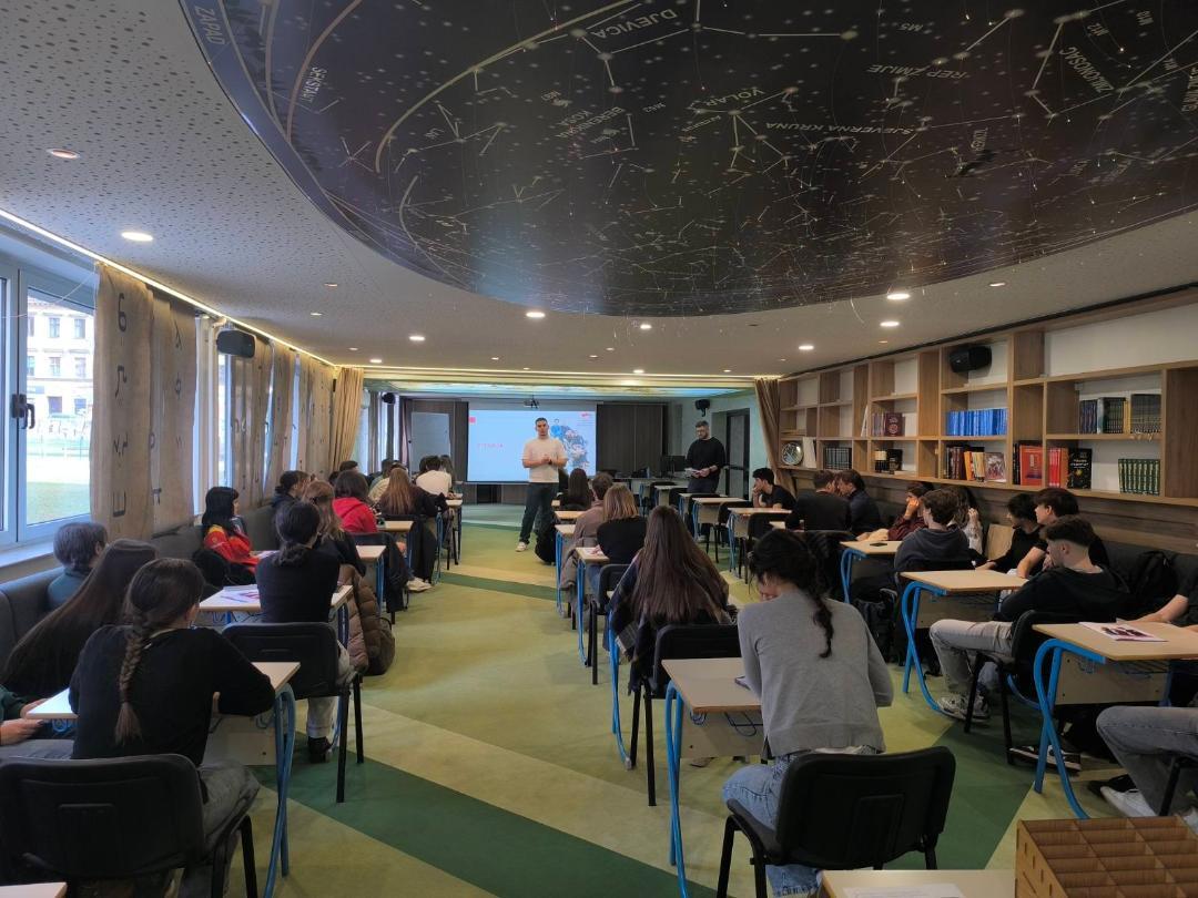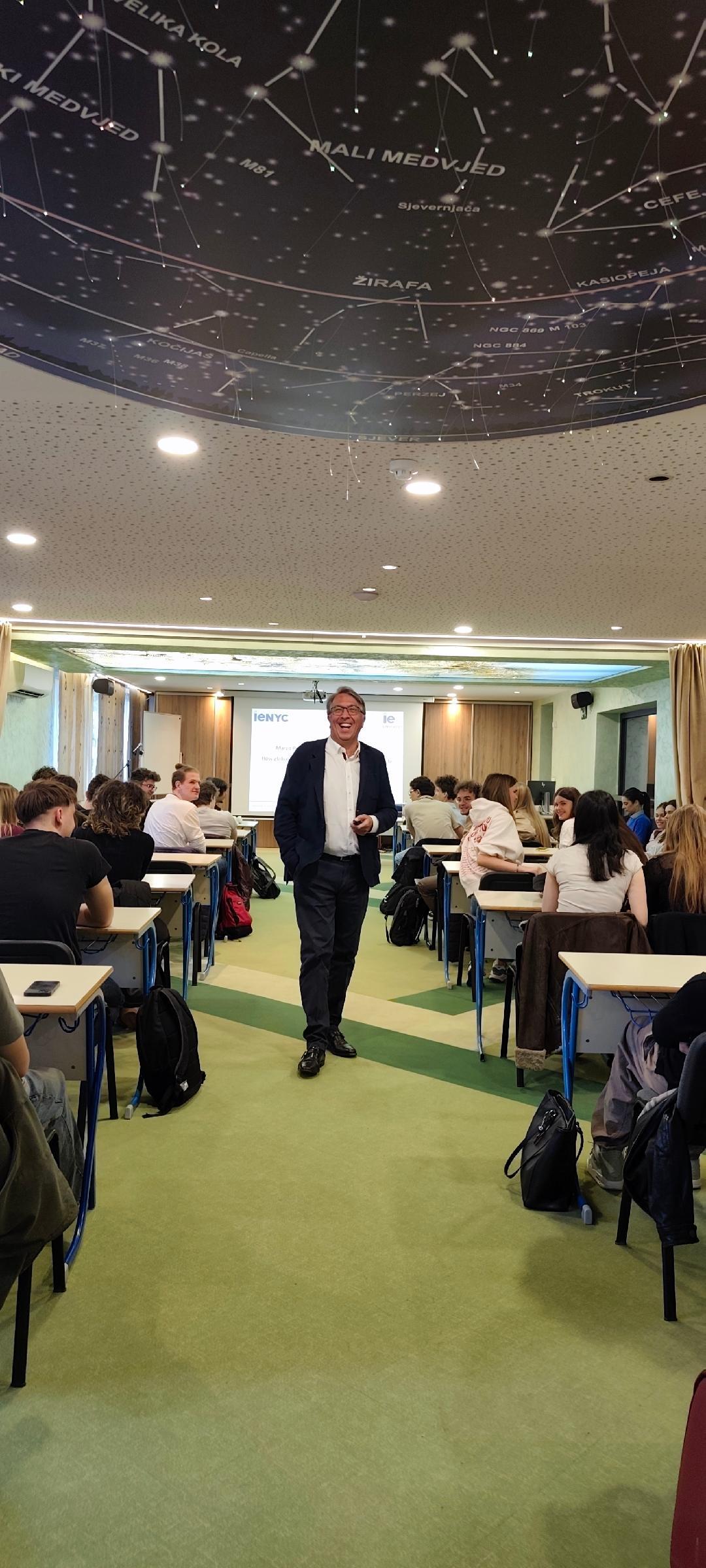 7. aprila 2026. školu su posjetili i predstavnici IE univerziteta, jednog od vodećih evropskih univerziteta u oblasti biznisa. Tom prilikom učenici su, osim prezentacije univerziteta, prisustvovali i masterclass predavanju profesora Fernanda Cortiñasa pod nazivom „Marco Polo and the Silk Road: How Global Adventures Shaped an Entrepreneurial Life“, koje je dodatno obogatilo njihovo razumijevanje savremenih globalnih tokova i preduzetništva.