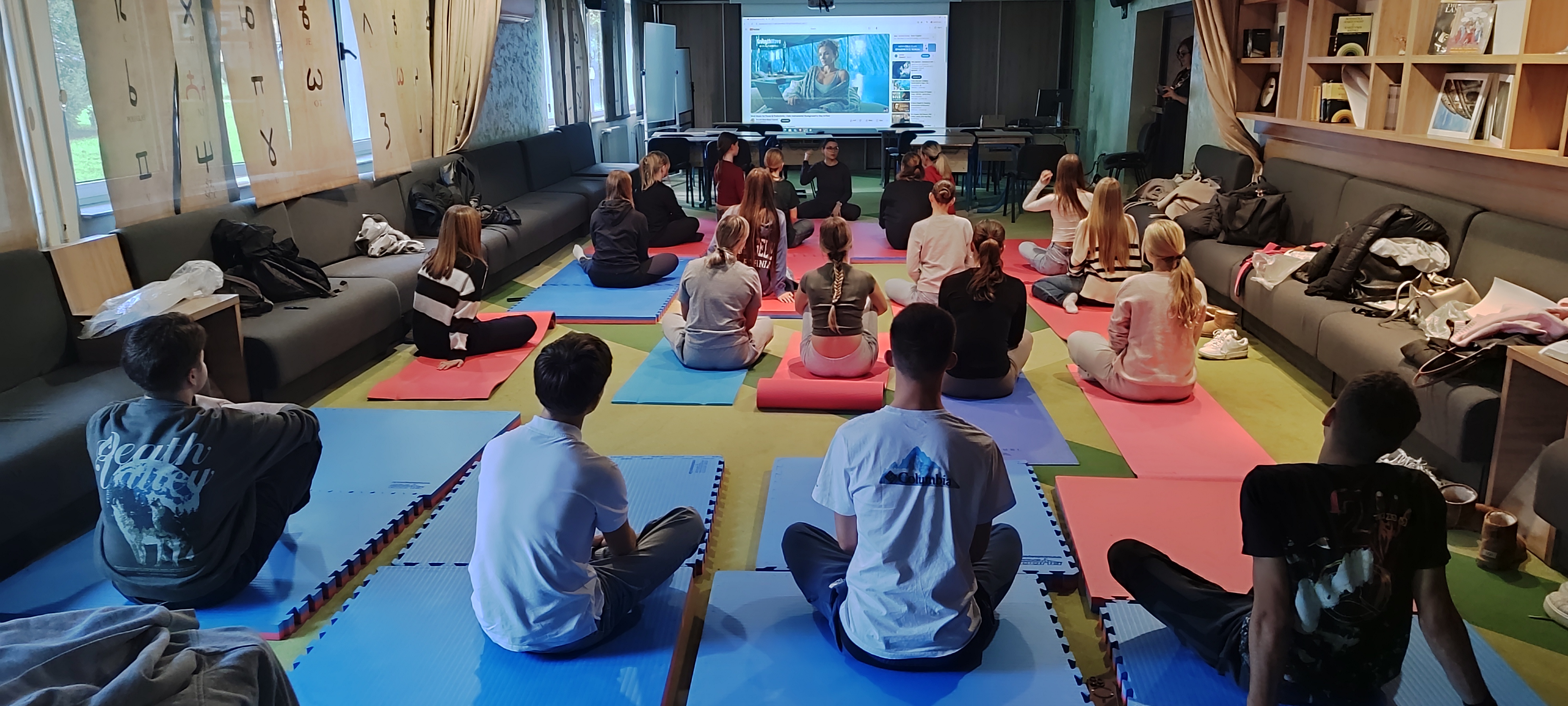 • U posljepodnevnim satima učenici su imali priliku opustiti se na času joge uz instruktoricu Aminu Šatrović Barišić, te su tom prilikom naučili kako ispravno disati i tako regulisati napade ankcioznosti i panike.