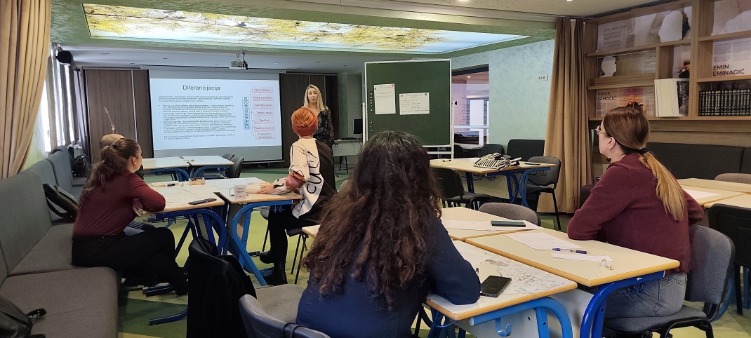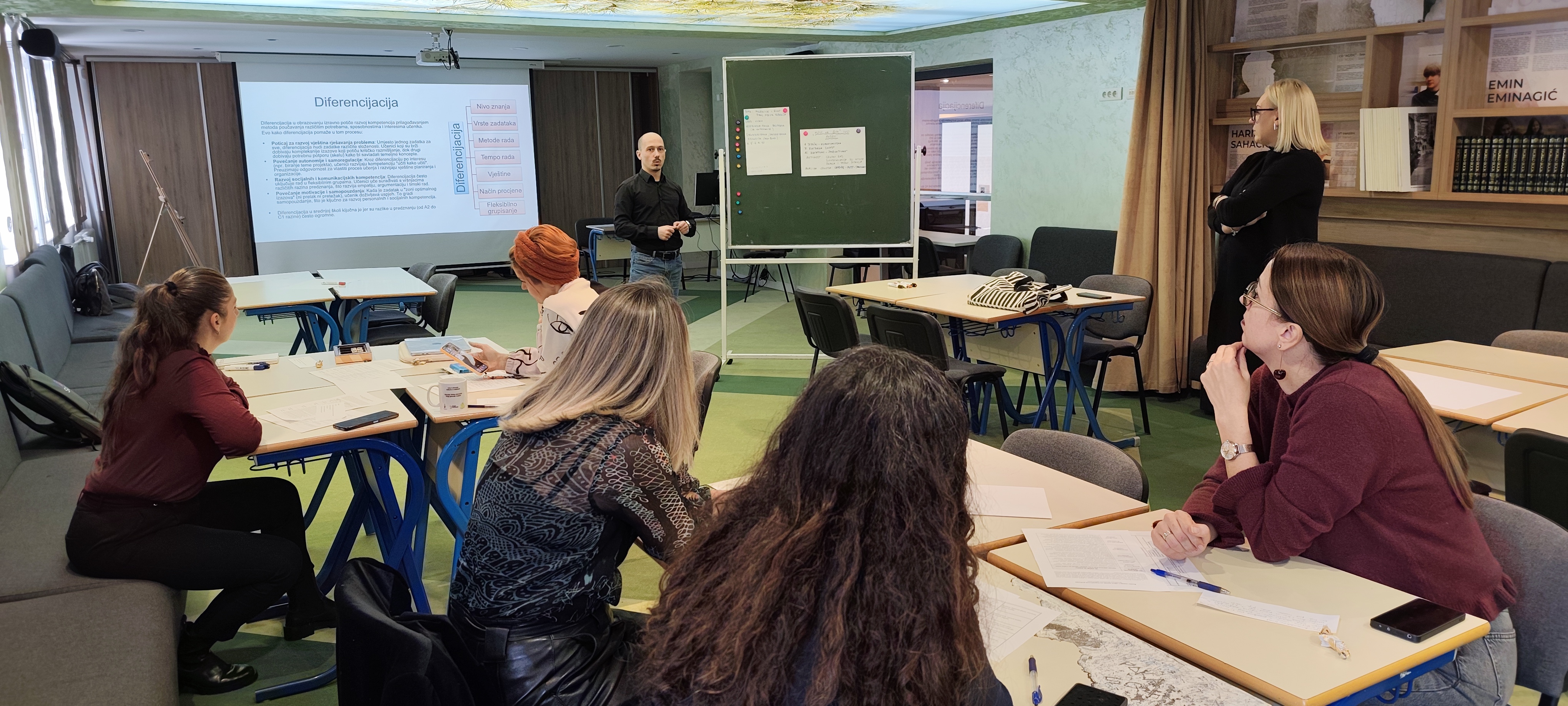 Radionicu su vodile profesorica bosanskog jezika i književnosti Merisa Drakovac i pedagog-psiholog za međunarodne programe Denisa Čordalija. Nakon kratke uvodne aktivnosti i teorijskog dijela, učesnici su imali zadatak da, na osnovu edukacija koje su pohađali u prethodnom periodu, osmisle nastavnu aktivnost koju će realizirati u narednom polugodištu, s ciljem razvijanja učeničkih kompetencija uz primjenu diferenciranog pristupa.