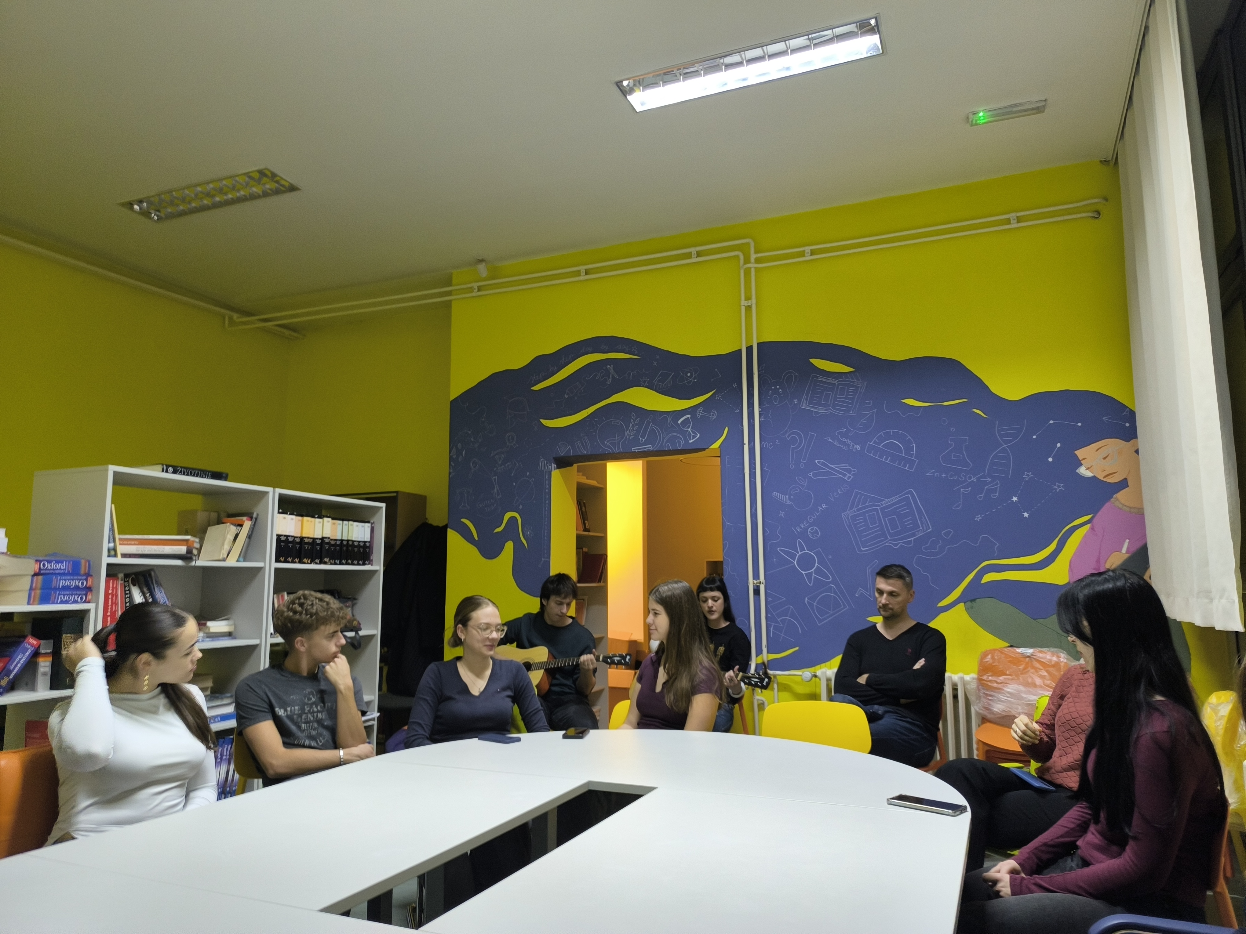 U večernjim satima, u čitaonici škole u organizaciji filozofskog kluba “Agora” održan je tradicionalni filozofski kafe pod nazivom: "Ima li umjetnost moralnu obavezu da bude angažovana?”