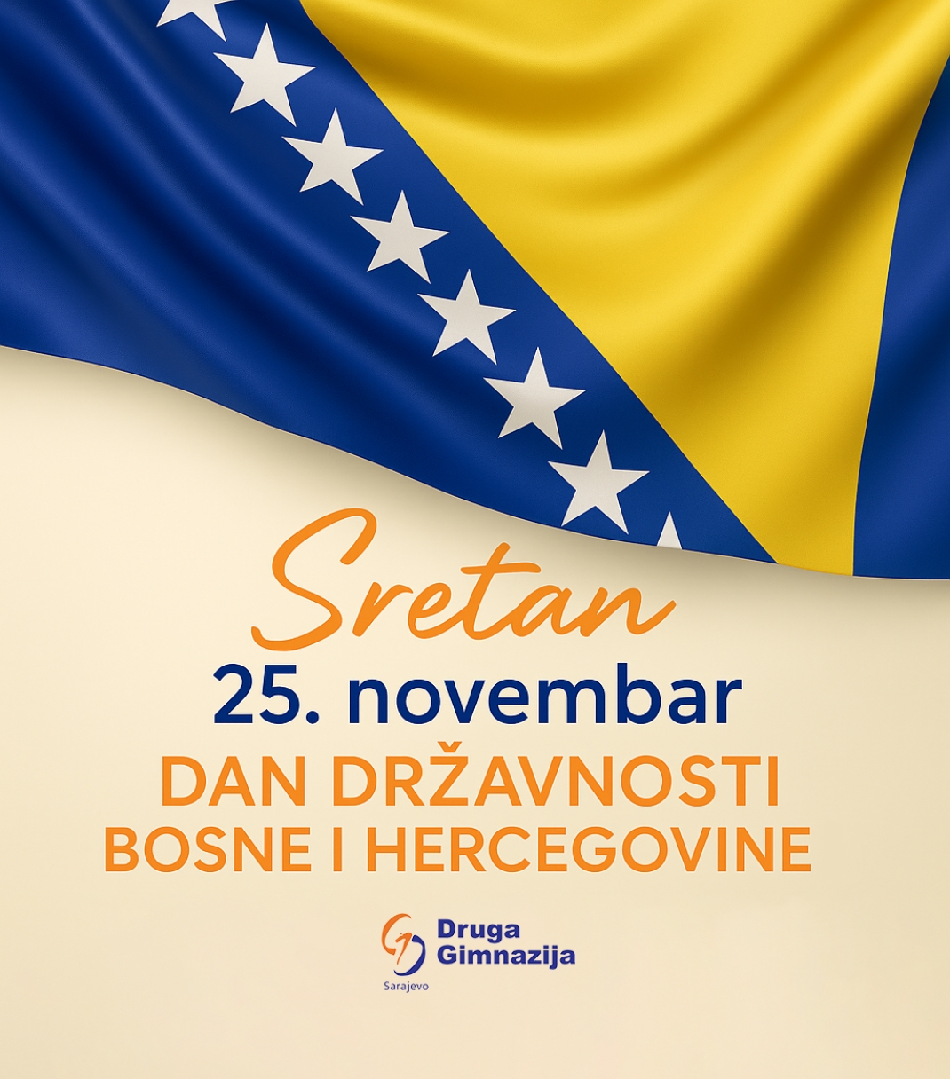 Svim učenicima, uposlenicima i roditeljima želimo sretan Dan državnosti Bosne i Hercegovine.