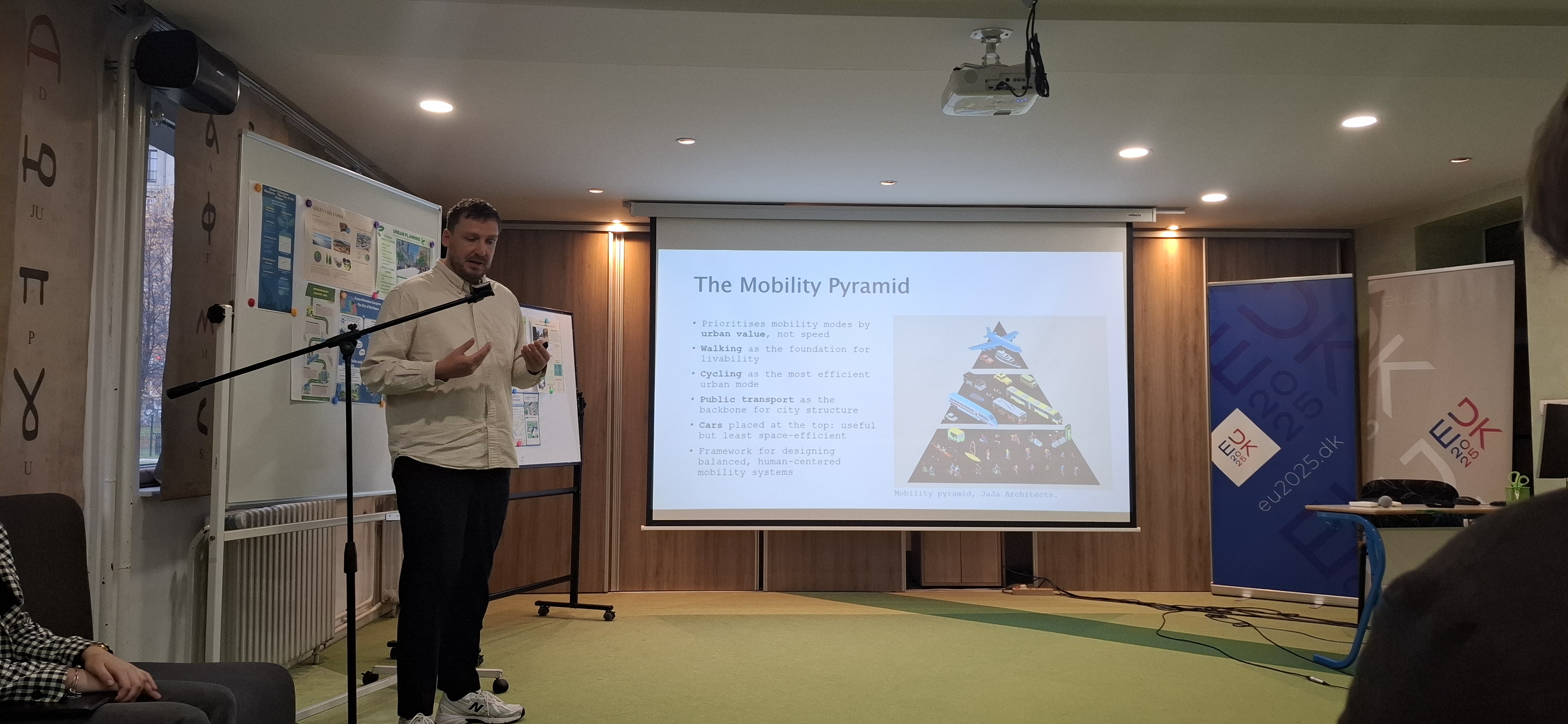 Događaju su prisustvovali ambasador Kraljevine Danske, H.E. Mr. Åge Sandal Møller, ekspert za urbano planiranje iz Danske Mr. Mathias Nordby, te predstavnica Službe za održivi razvoj Grada Sarajeva Nermina Suljević. U holu škole bila je postavljena interaktivna izložba „Zajedno zelenije“, sa VR vožnjom biciklom kroz Kopenhagen, koja je bila dostupna svim učenicima i profesorima prije i nakon prezentacija.