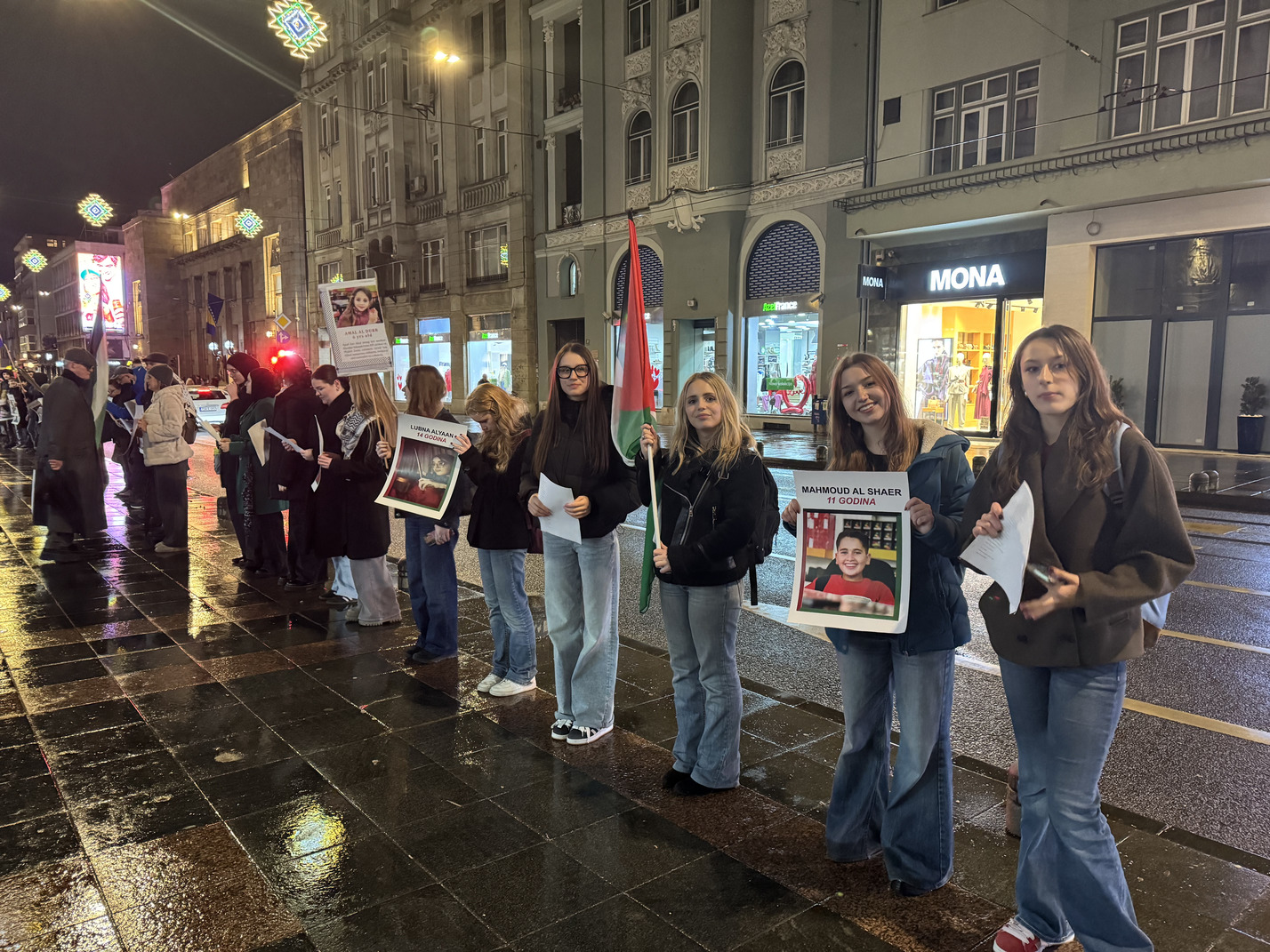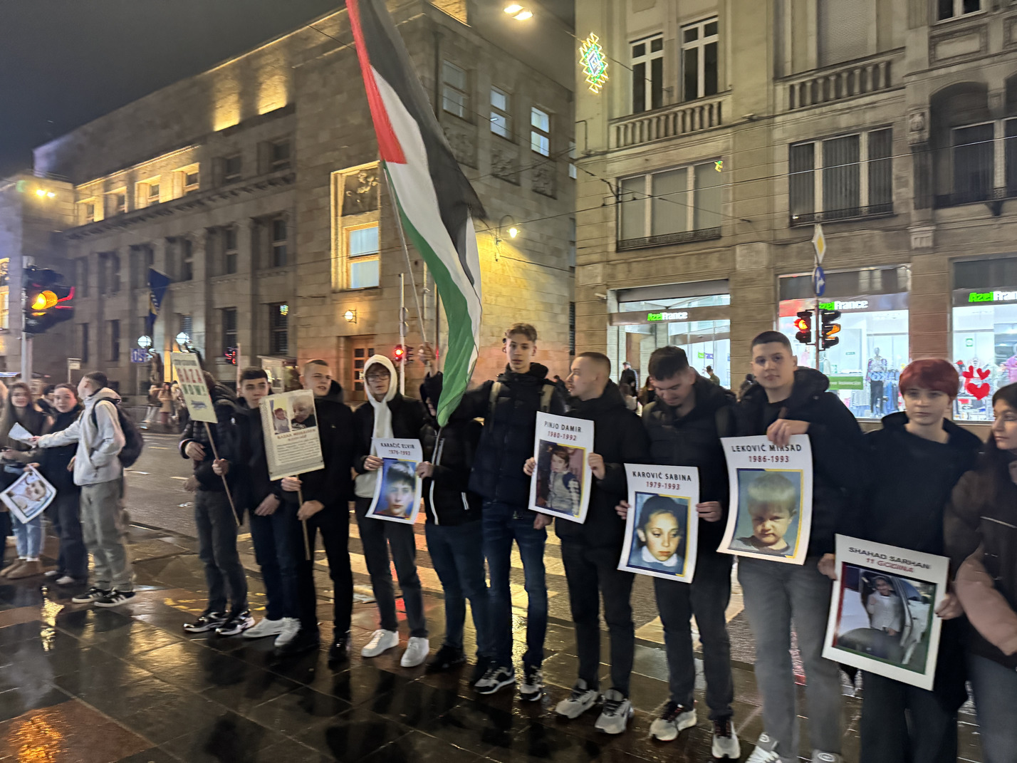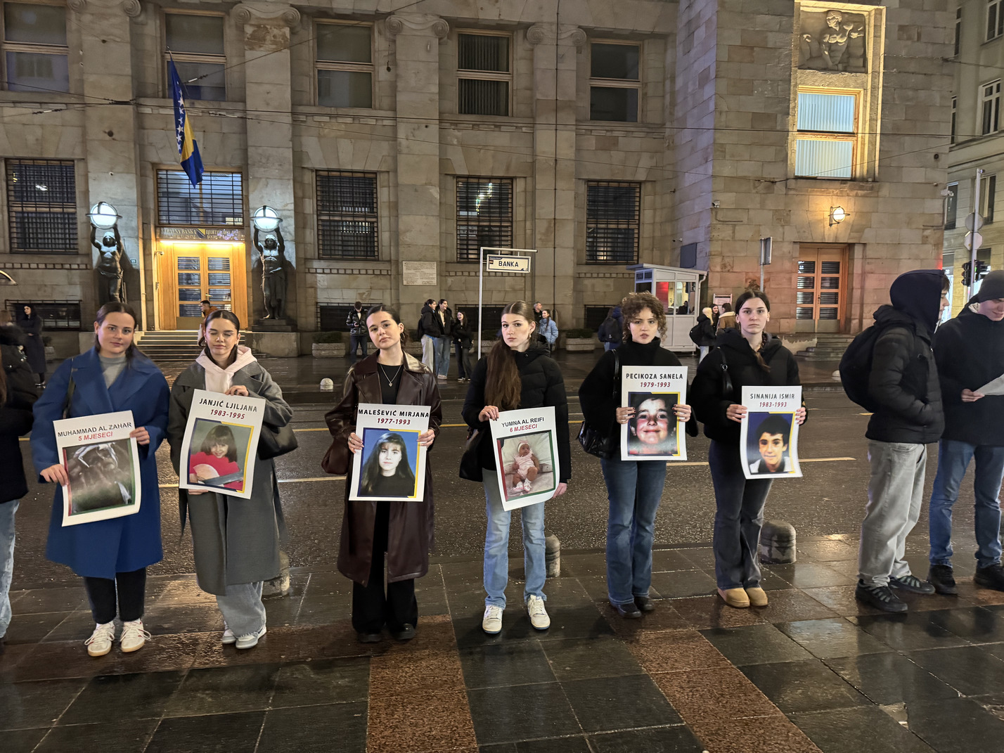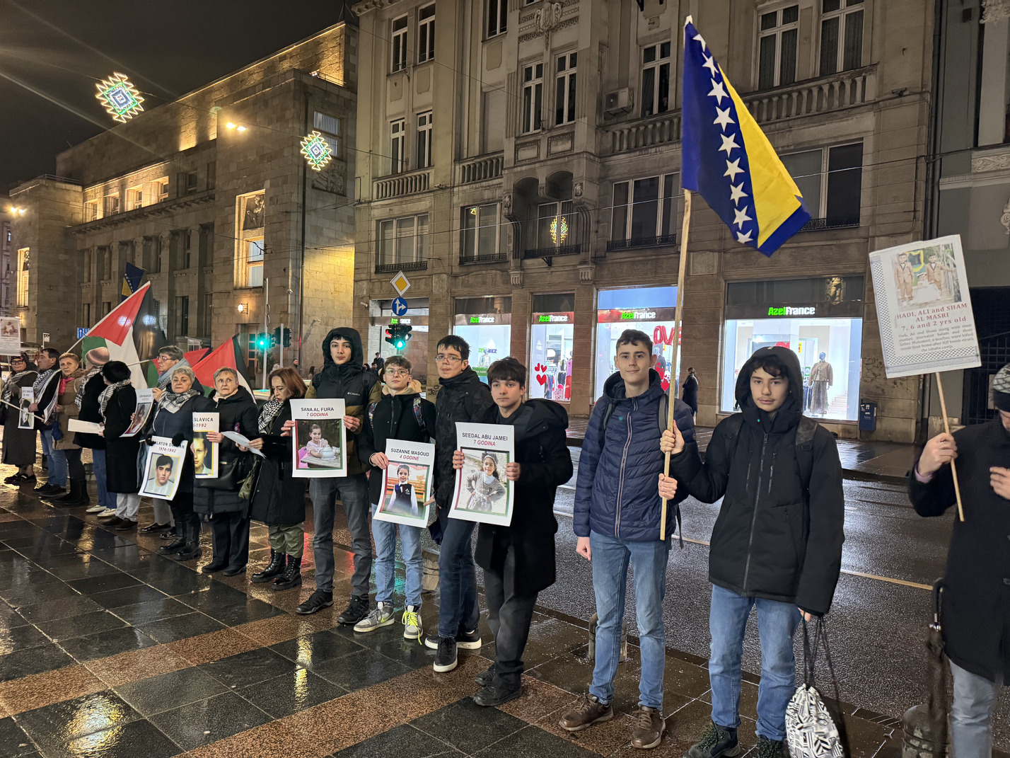 Formiranje niza započelo je u 18:30 sati, dok je sama akcija trajala od 19:00 do 19:30 sati. Naši učenici su svojim prisustvom i angažmanom pokazali zrelost, empatiju i razumijevanje važnosti očuvanja historijskog pamćenja te odgovornog promišljanja savremenih društvenih izazova. Uprkos kiši koja je padala tokom cijelog trajanja događaja, ostali su dostojanstveni i istrajni, čitajući imena i držeći fotografije ubijene djece. Njihovo učešće svjedoči o razvijenoj svijesti, solidarnosti i odgovornosti, kao i o vrijednostima koje škola nastoji njegovati kroz obrazovanje i odgoj.