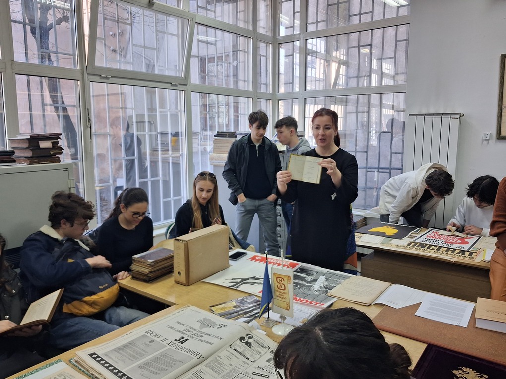 U petak 27. februara učenici II-3 IB razreda u pratnji profesora Vedada Mulavdića posjetili su Historijski arhiv Sarajevo. Posjeta je organizirana u okviru Dana otvorenih vrata arhiva, manifestacije koja se realizira povodom Dana nezavisnosti Bosne i Hercegovine. Učenici su imali priliku upoznati se s osnovama arhivistike i naučiti zašto je arhiv važan za našu kulturu sjećanja ikako ga povezati s onim što učimo u školi. Osim toga, pogledali su i izložbu dokumenata iz zbirke Historijskog arhiva: od raritetnih primjera orijentalne zbirke, prepisa Kur'ana i rječnika Potur-Šahidija, preko zbirke fotografija, karata i plakata, do dokumentarne arhivske građe Sarajevskog gradskog poglavarstva. Također su se upoznali s osnovama arhivske djelatnosti i bibliotečkom građom koja se čuva u biblioteci arhiva. Prigodno predavane učenicima održale su više arhivistice Almira Alibašić i Elma Dervišbegović, koje su posebno istakle značaj arhiva kao čuvara sjećanja jedne zajednice i mjesta na kojem možemo dobiti sve potrebne informacije prilikom istraživačkog rada. Na kraju posjete obećali su da ovo neće biti njihova posljednja posjeta ovoj značajnoj istituciji.